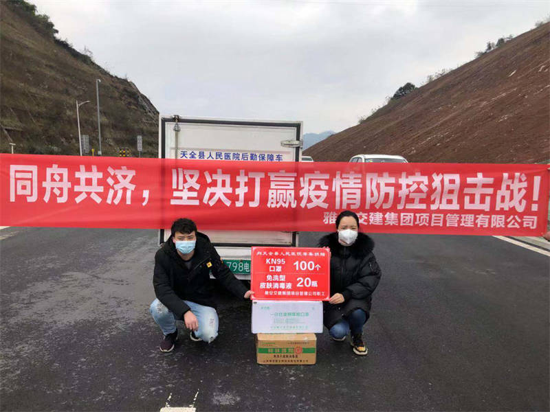 2月5日,交建集團項目管理公司自行組織員工籌集善款,通過多方籌集購買KN95口罩100個、免洗型皮膚消毒液20瓶。捐贈給天全縣人民醫(yī)院。為沖在疫情防控第一線的白衣天使們貢獻出一份力量,愿意與無數(shù)默默無聞、身處一線的人員一起打贏這場疫情防控狙擊戰(zhàn)。