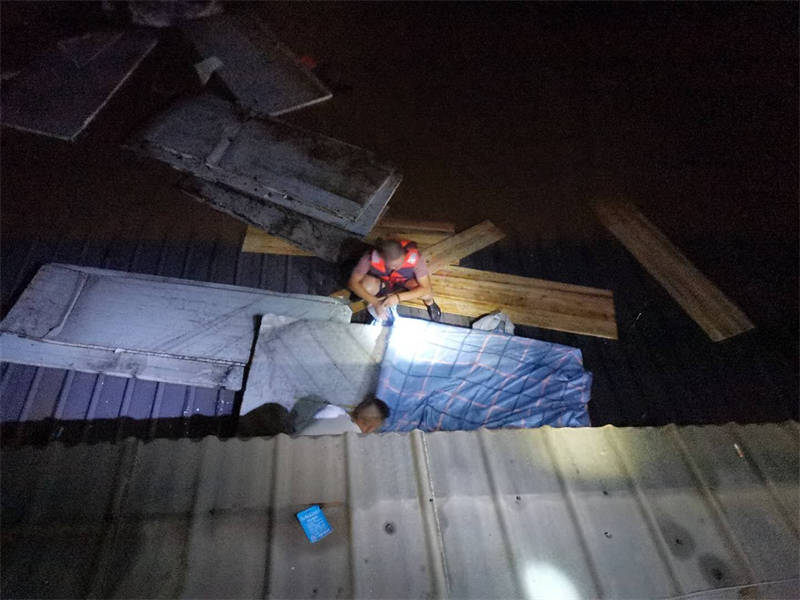 “感謝3名值班人員及時打電話通知我,否則后果不堪設想!焙喚纯f,回想起昨晚的情形,心里還是有些后怕。當時,他接到值班人員電話后,發(fā)現門衛(wèi)室外的洪水已經逼近脖子,無法順利撤離,洪水漲勢又快,不一會兒,他只得爬上門衛(wèi)室頂端才能避免被水淹沒。后來,洪水沖來了一棵樹,簡敬奎借助這棵樹慢慢轉移到了附近一棵較高大的樹上繼續(xù)躲避,直至黃志和方華軍前來營救。