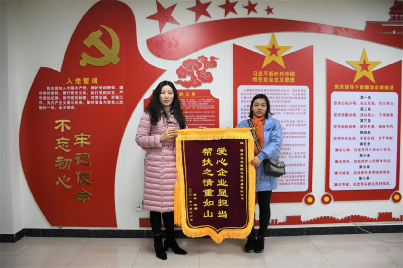 “感謝運(yùn)通公司一直以來對(duì)我和家人的關(guān)懷、照顧,讓我感受到了社會(huì)的溫暖,讓我們的生活充滿了希望!”1月18日,家住雨城區(qū)雅州大道的黃菲女士在青江街道石馬社區(qū)工作人員的陪伴下來到運(yùn)通公司,將一面印有“愛心企業(yè)顯擔(dān)當(dāng) 幫扶之情重如山”字樣的錦旗送到運(yùn)通公司。這是運(yùn)通公司2022年收到的第一份特殊“禮物”。