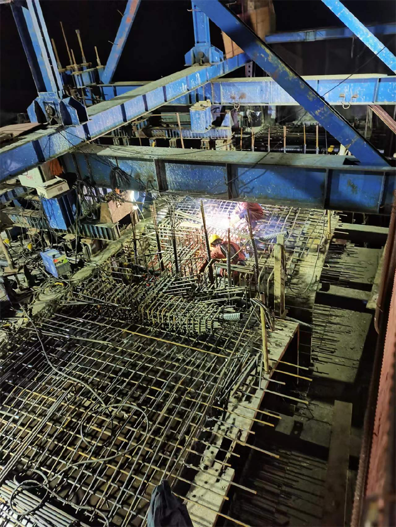 為確保項(xiàng)目高效推進(jìn),交建路橋搶抓黃金工期,共投入14臺設(shè)備、70余人,加班加點(diǎn)、挑燈夜戰(zhàn)綁扎K3+415成雅高速跨線大橋邊跨現(xiàn)澆段鋼筋。工地現(xiàn)場燈火通明,機(jī)械轟鳴,施工人員揮汗如雨,一派繁忙景象,工程建設(shè)井然有序。此次搶工,為后續(xù)項(xiàng)目施工積蓄了發(fā)展動能,同時(shí)也保障了項(xiàng)目總體目標(biāo)的實(shí)現(xiàn)。