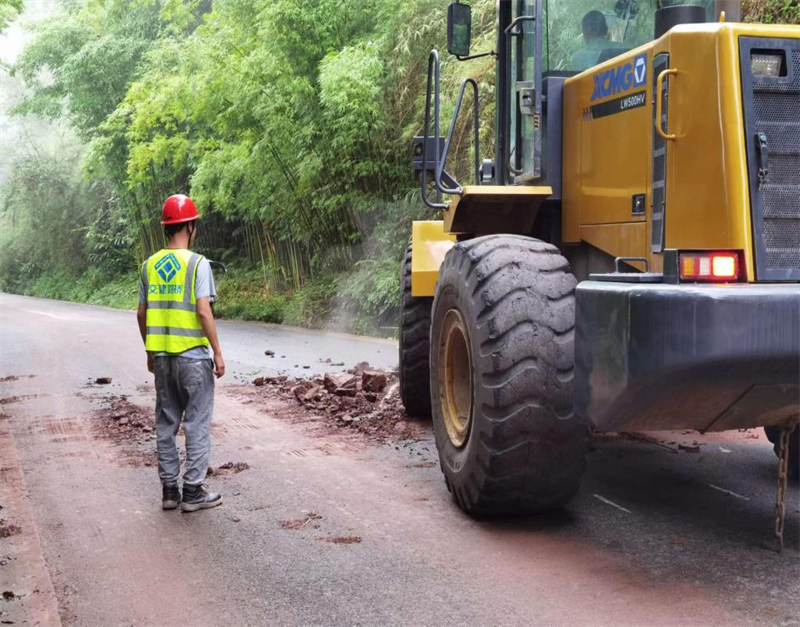 災情發(fā)生后,交建路橋公司省道104改建工程項目部應(yīng)望魚鎮(zhèn)抗洪搶險應(yīng)急指揮部要求,立即啟動抗洪搶險應(yīng)急預案,由20余名現(xiàn)場施工人員組成的搶險隊伍兵分三路,投入挖機2臺、裝載機2臺、水車1臺、皮卡車2輛,圓滿完成雅趙路多處塌方和曹萬村、嫣溪溝村等村道泥石流及邊坡坍塌土石方清理工作,及時恢復道路交通,受到當?shù)攸h委政府和村民一致好評。