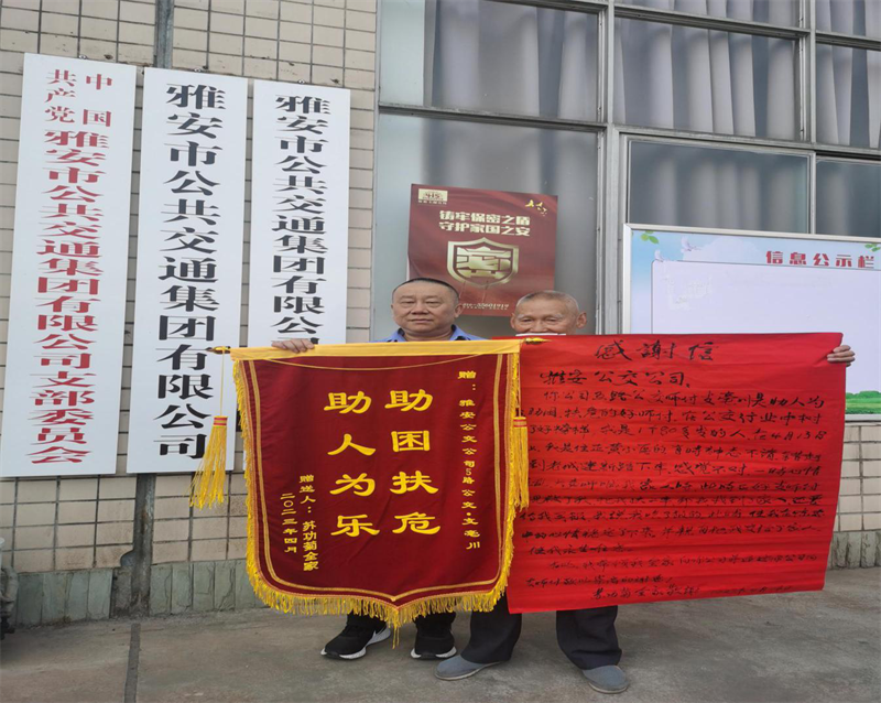 近日,雅安市公共交通集團(tuán)有限公司5路公交車駕駛員支亳川,在行駛過程中熱心幫助一老人成功尋找到家人,給文明雨城增添了暖心的一幕。4月17日,老人和家人帶著親手寫的感謝信和錦旗,來(lái)到公交集團(tuán)當(dāng)面感謝公交集團(tuán)和5路駕駛員支師傅熱心助人的善舉。