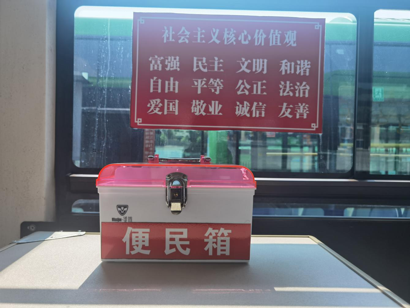 便民箱位于駕駛室正后方,箱內(nèi)包括口罩、繃帶、創(chuàng)可貼、棉簽、碘伏及速效救心丸等物品,如乘客乘車(chē)途中有需要的,可自行領(lǐng)取使用;愛(ài)心雨傘放置在車(chē)輛上車(chē)門(mén)處,每車(chē)3把,供雨天乘客借用歸還后循環(huán)使用。