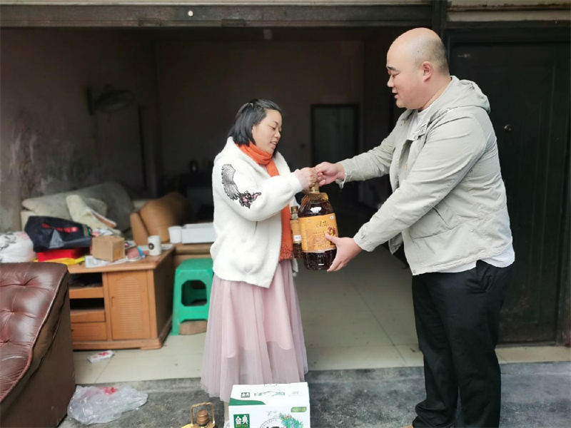 10月18日下午,雅安交建集團運通貿(mào)易有限公司黨員干部在雨城區(qū)青江街道石馬社區(qū)工作人員的帶領下,前往“一對一”幫扶對象黃非女士家中,為她送去了大米、食用油、牛奶等慰問品。