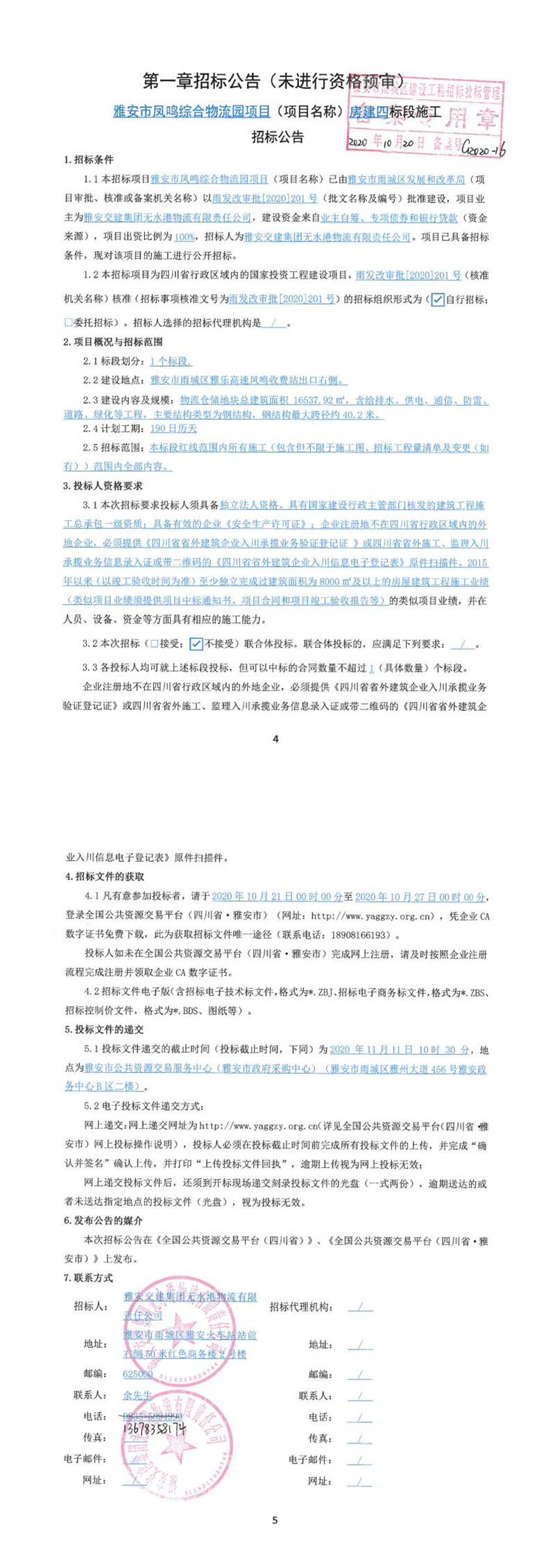 雅安交建集團(tuán)無水港物流有限責(zé)任公司雅安市鳳鳴綜合物流園項(xiàng)目(項(xiàng)目名稱)房建四標(biāo)段施工招標(biāo)公告
