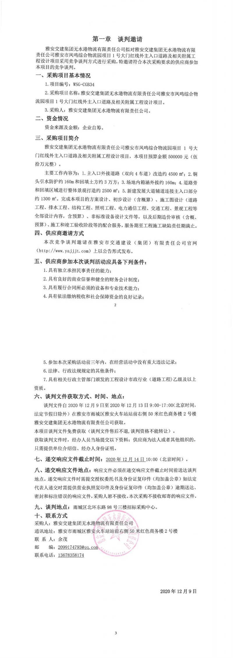 雅安交建集團(tuán)無水港物流有限責(zé)任公司雅安市鳳鳴綜合物流園項(xiàng)目1號(hào)大門紅線外主入口道路及相關(guān)附屬工程設(shè)計(jì)項(xiàng)目競(jìng)爭(zhēng)談判公告