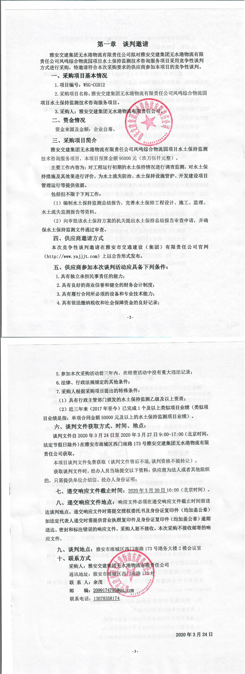 雅安交建集團(tuán)無(wú)水港物流有限責(zé)任公司鳳鳴綜合物流園項(xiàng)目水土保持監(jiān)測(cè)技術(shù)咨詢(xún)服務(wù)項(xiàng)目競(jìng)爭(zhēng)性談判公告