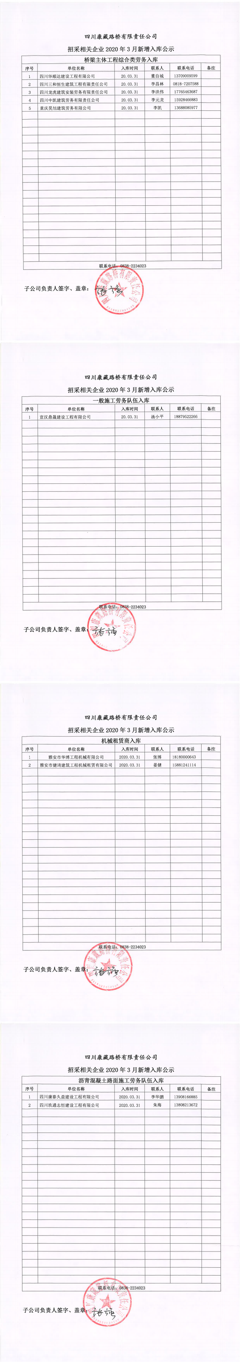 四川康藏路橋有限責任公司招采相關(guān)企業(yè)2020年3月新增入庫公示