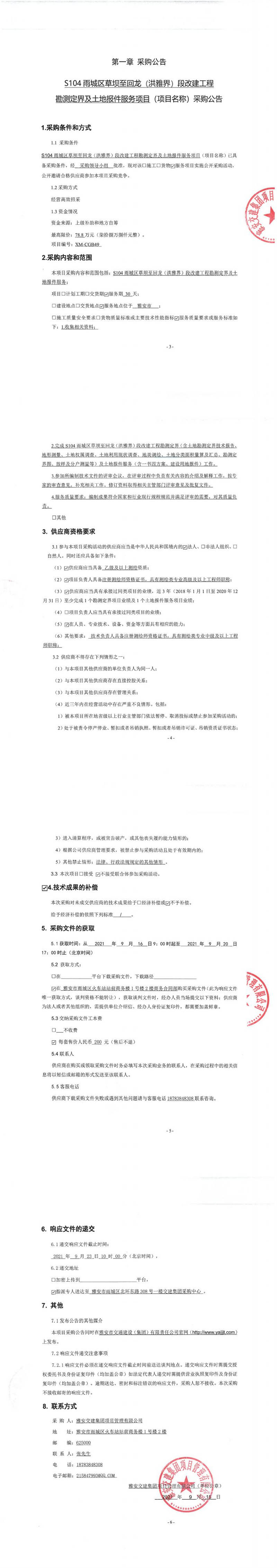 雅安交建集團(tuán)項(xiàng)目管理有限公司S104雨城區(qū)草壩至回龍(洪雅界)段改建工程勘測定界及土地報(bào)件服務(wù)項(xiàng)目采購公告