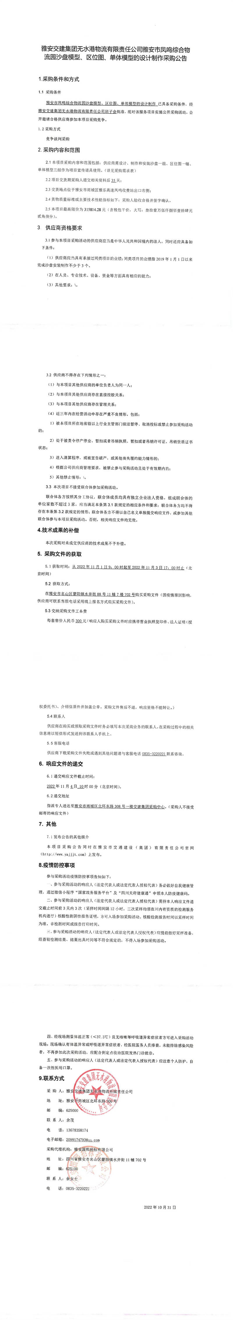 雅安交建集團(tuán)無水港物流有限責(zé)任公司雅安市鳳鳴綜合物流園沙盤模型、區(qū)位圖、單體模型的設(shè)計(jì)制作采購(gòu)公告