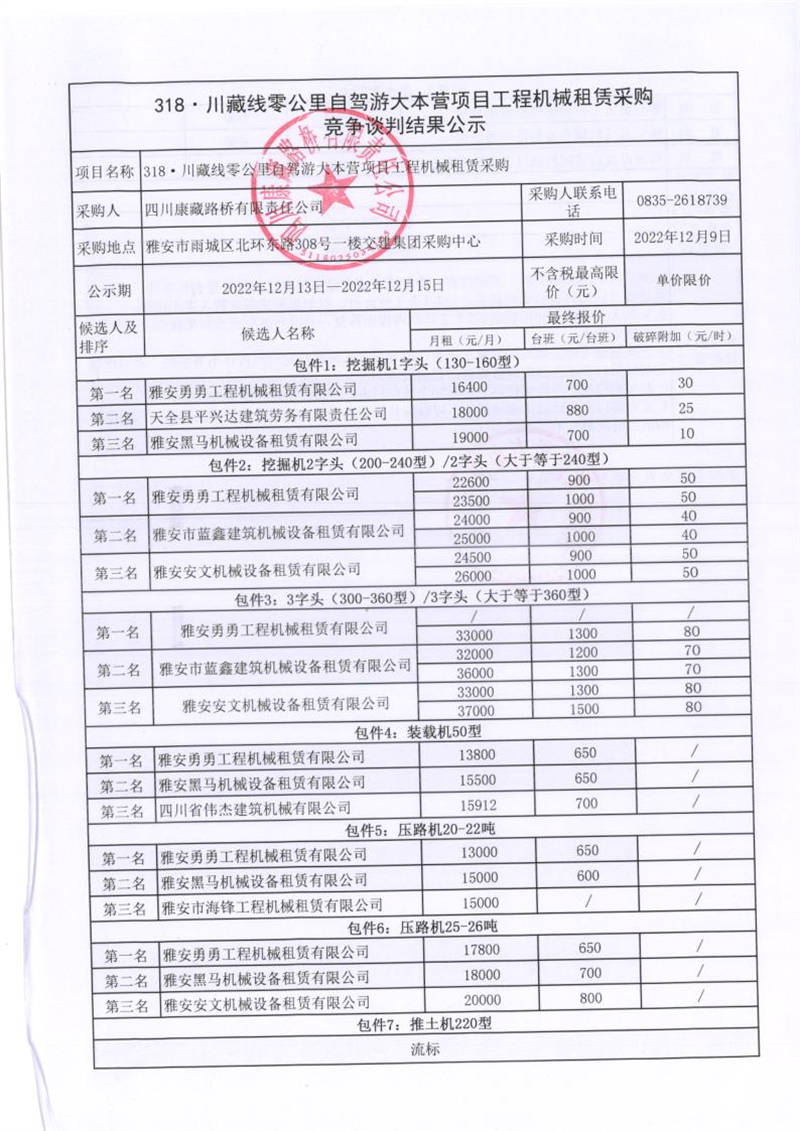 四川康藏路橋有限責任公司318.川藏線零公里自駕游大本營項目工程機械租賃采購競爭談判結(jié)果公示