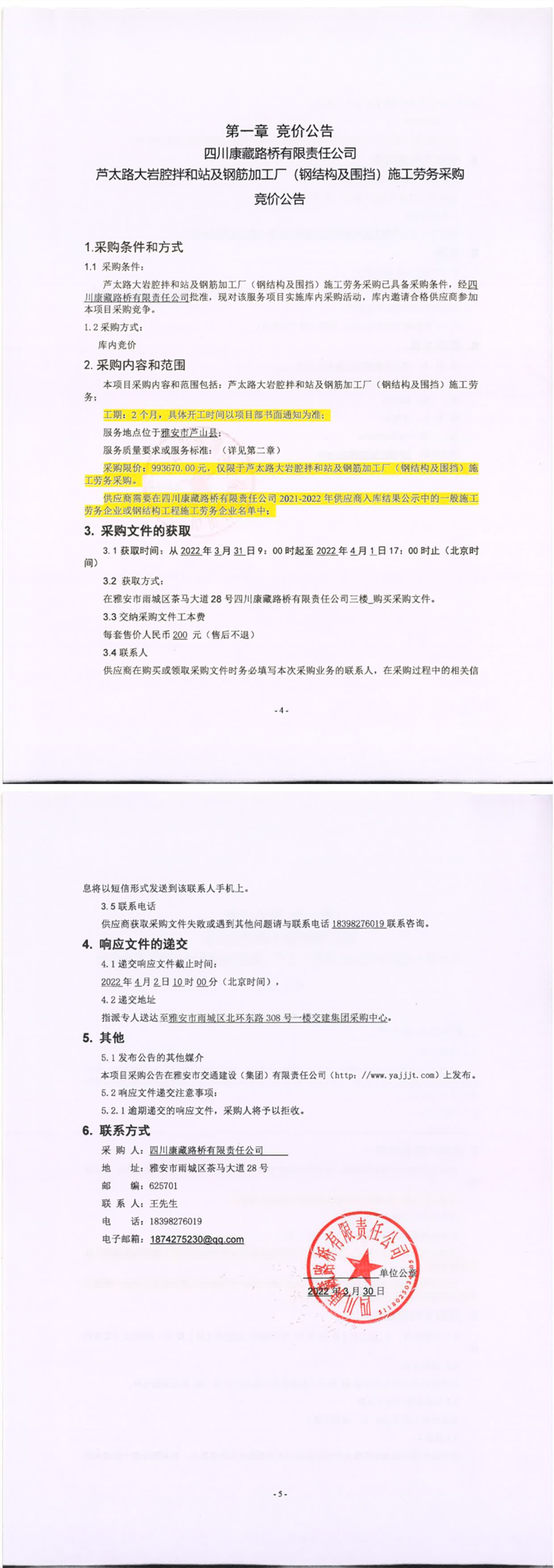 四川康藏路橋有限責(zé)任公司蘆太路大巖腔拌和站及鋼筋加工廠(鋼結(jié)構(gòu)及圍檔)施工勞務(wù)采購競價(jià)公告