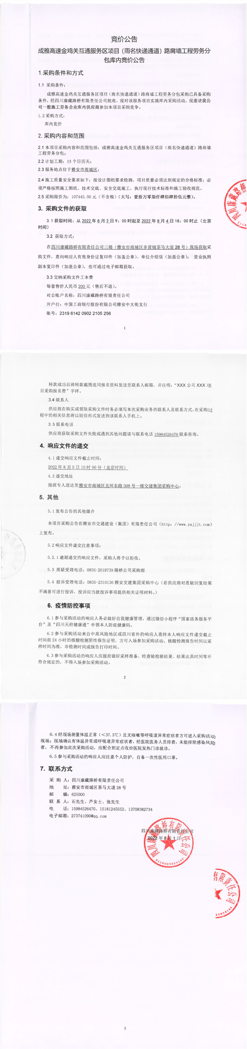 四川康藏路橋有限責(zé)任公司成雅高速金雞關(guān)互通服務(wù)區(qū)項(xiàng)目(雨名快速通道)路肩墻工程勞務(wù)分包庫內(nèi)競價(jià)公告