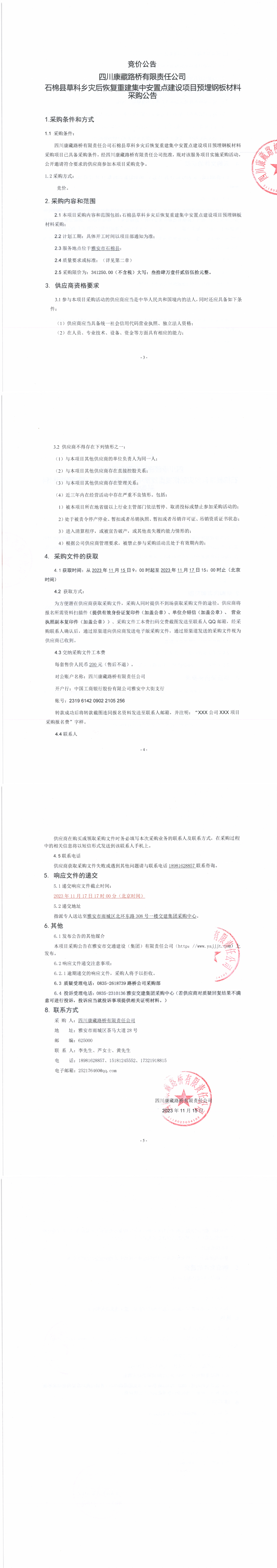 四川康藏路橋有限責(zé)任公司石棉縣草科鄉(xiāng)災(zāi)后恢復(fù)重建集中安置點(diǎn)建設(shè)項(xiàng)目預(yù)埋鋼板材料采購公告