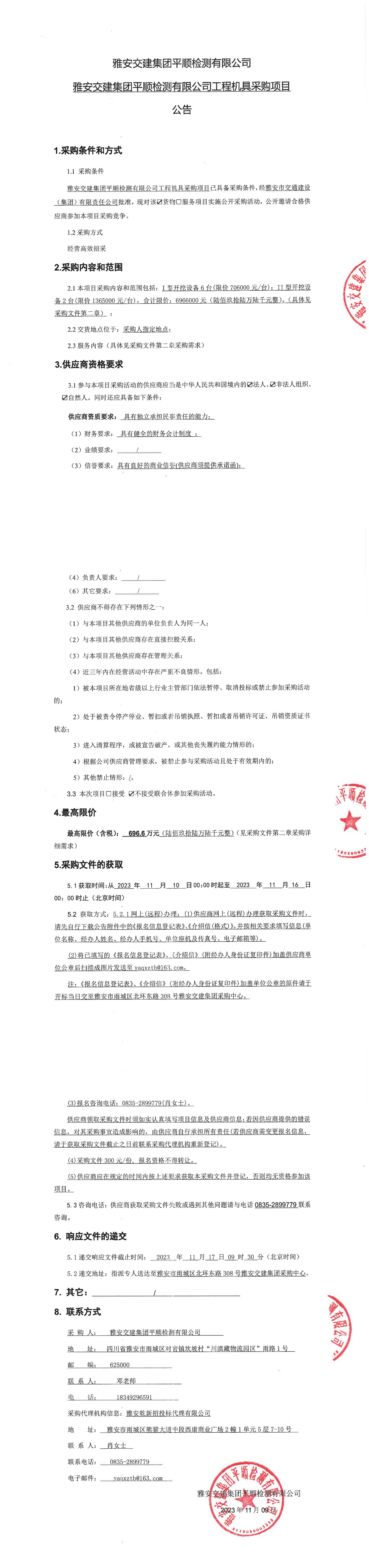 雅安交建集團(tuán)平順檢測(cè)有限公司工程機(jī)具采購項(xiàng)目公告