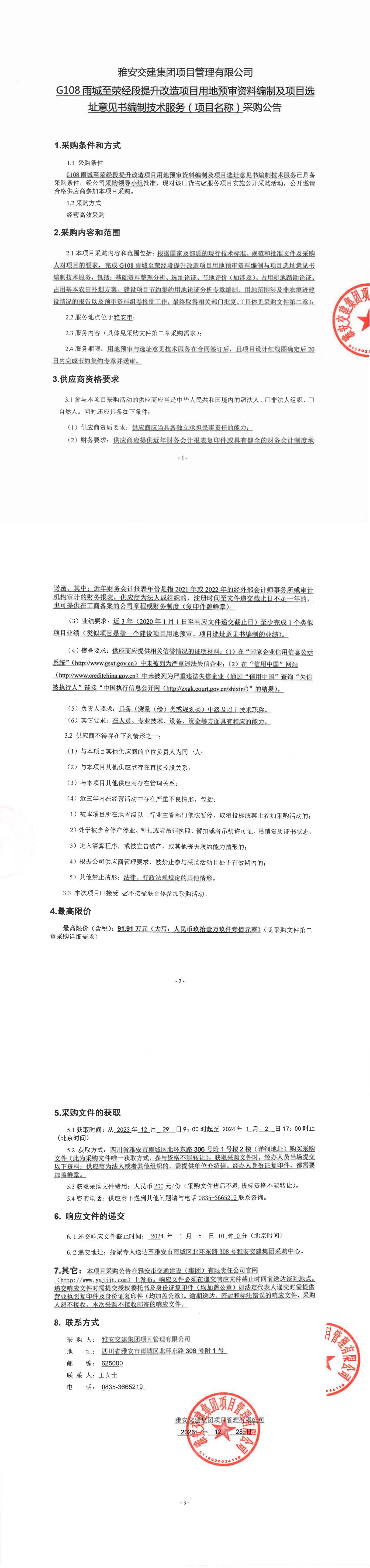 雅安交建集團(tuán)項(xiàng)目管理有限公司G108雨城至滎經(jīng)段提升改造項(xiàng)目用地預(yù)審資料編制及項(xiàng)目選址意見(jiàn)書(shū)編制技術(shù)服務(wù)(項(xiàng)目名稱)采購(gòu)公告