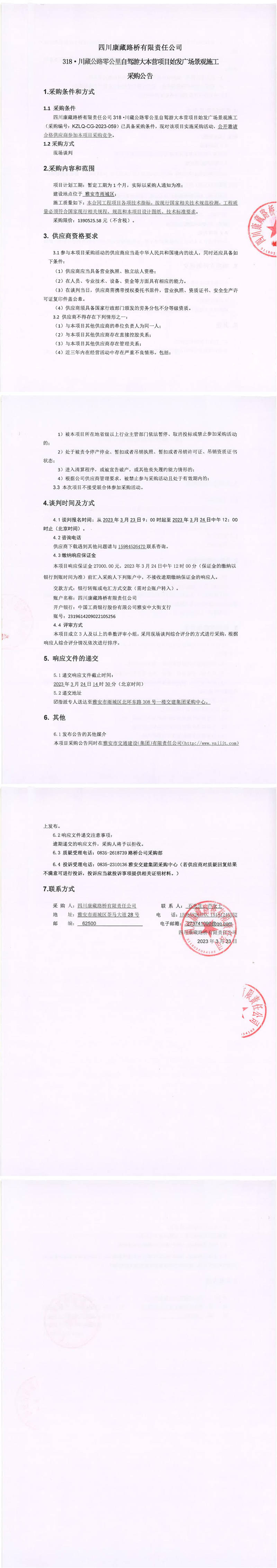 四川康藏路橋有限責(zé)任公司318·川藏公路零公里自駕游大本營(yíng)項(xiàng)目始發(fā)廣場(chǎng)景觀施工采購(gòu)公告