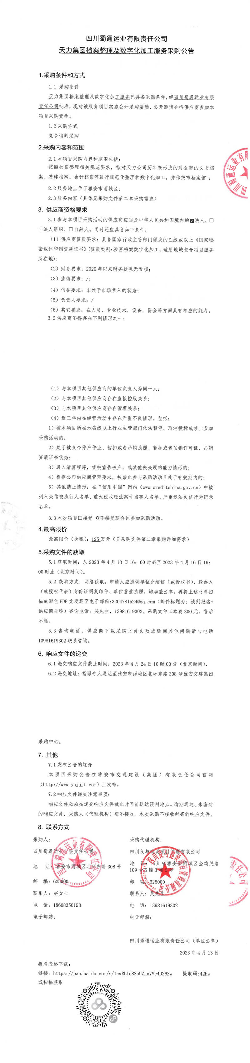 四川蜀通運(yùn)業(yè)有限責(zé)任公司天力集團(tuán)檔案整理及數(shù)字化加工服務(wù)采購公告