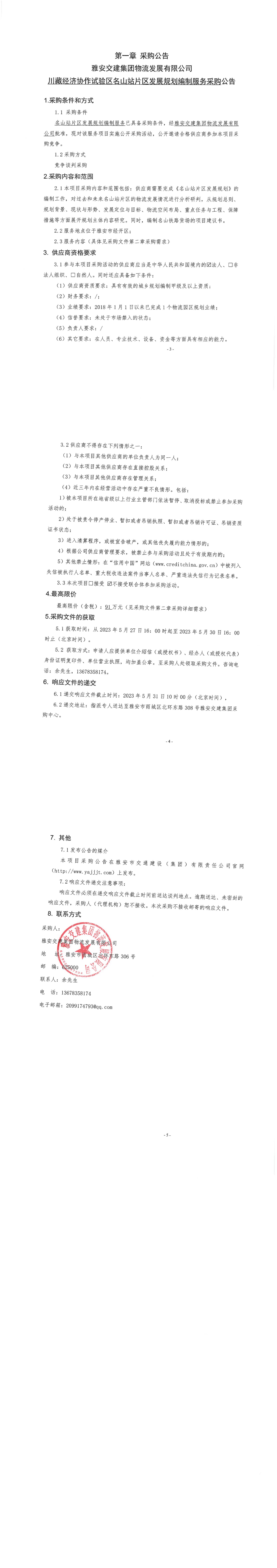雅安交建集團(tuán)物流發(fā)展有限公司川藏經(jīng)濟(jì)協(xié)作試驗(yàn)區(qū)名山站片區(qū)發(fā)展規(guī)劃編制服務(wù)采購公告
