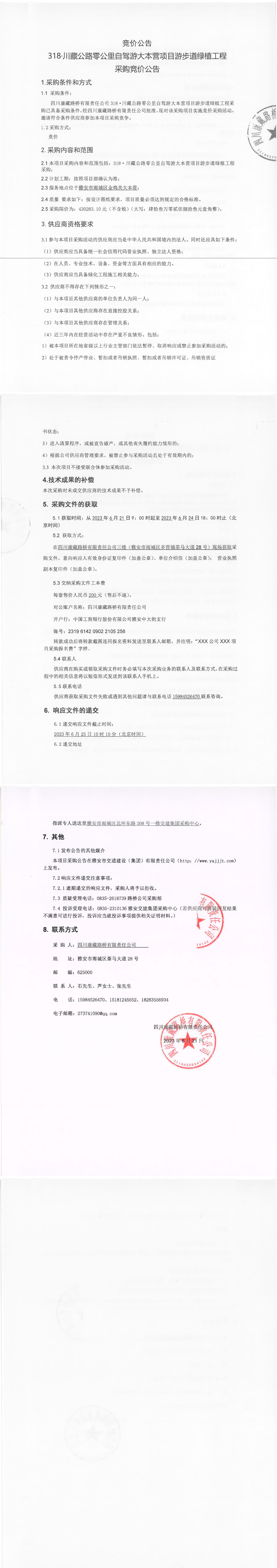 四川康藏路橋有限責(zé)任公司318·川藏公路零公里自駕游大本營項(xiàng)目游步道綠植工程采購競價公告