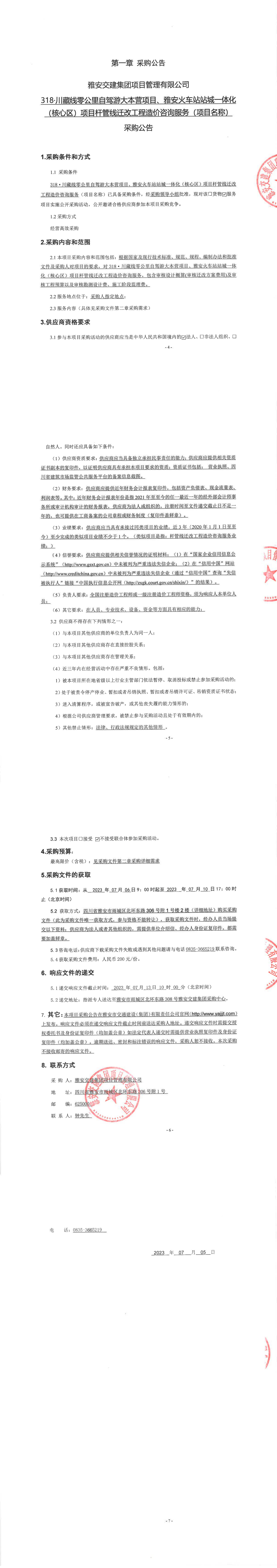 雅安交建集團(tuán)項(xiàng)目管理有限公司318·川藏線零公里自駕大本營項(xiàng)目、雅安火車站站城一體化(核心區(qū))項(xiàng)目桿管線遷改工程造價(jià)咨詢服務(wù)(項(xiàng)目名稱)采購公告