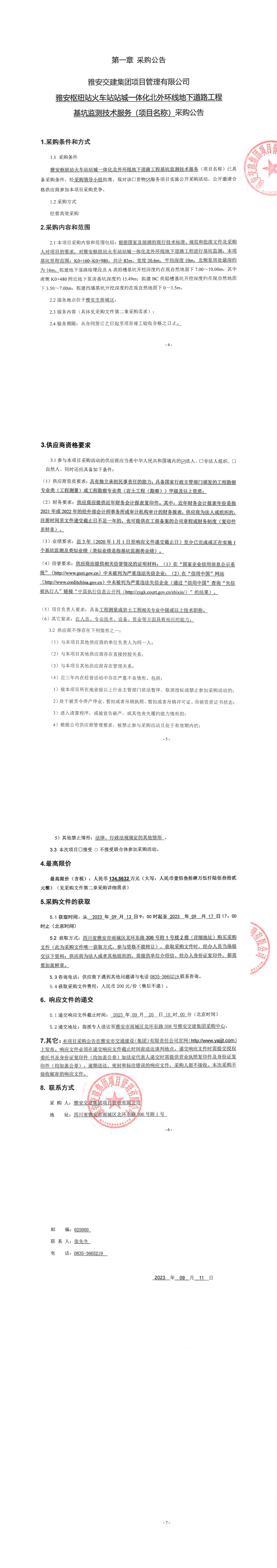 雅安交建集團項目管理有限公司雅安樞紐站火車站站城一體化北外環(huán)線地下道路工程基坑監(jiān)測技術服務(項目名稱)采購公告