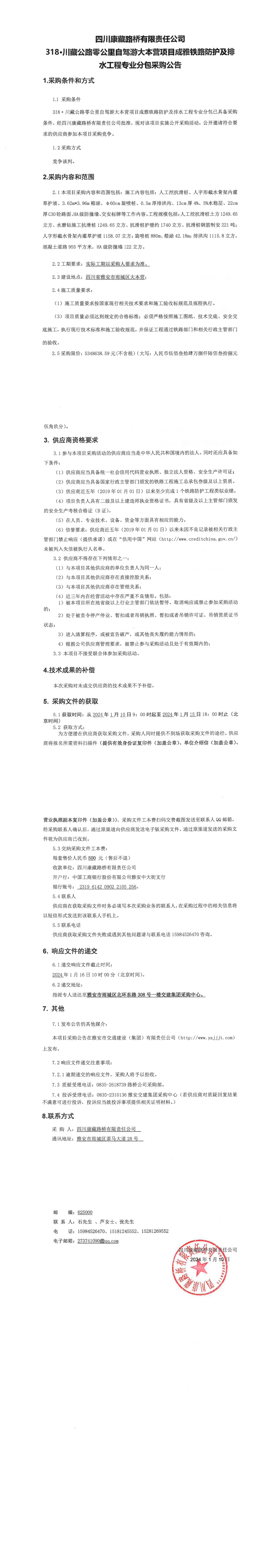 四川康藏路橋有限責(zé)任公司318·川藏公路零公里自駕游大本營(yíng)項(xiàng)目成雅鐵路防護(hù)及排水工程專業(yè)分包采購(gòu)公告