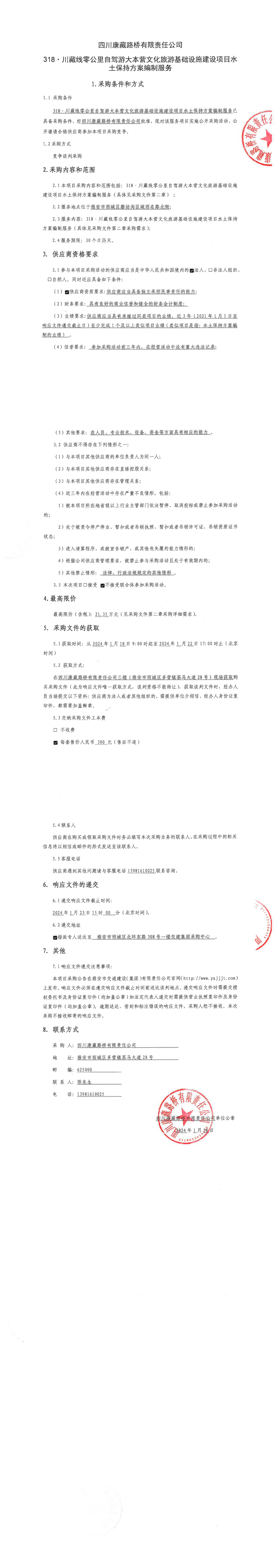 四川康藏路橋有限責(zé)任公司318·川藏線(xiàn)零公里自駕游大本營(yíng)文化旅游基礎(chǔ)設(shè)施建設(shè)項(xiàng)目水土保持方案編制服務(wù)采購(gòu)公告