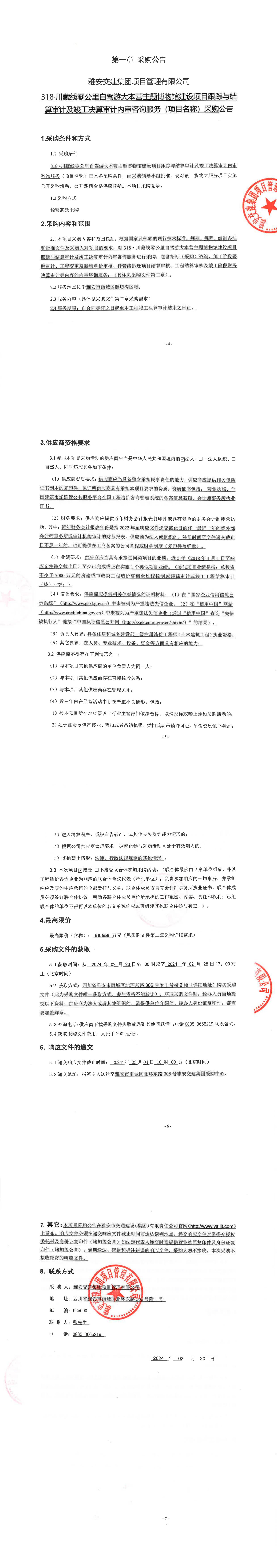 雅安交建集團項目管理有限公司318·川藏線零公里自駕游大本營主題博物館建設項目跟蹤與結算審計及竣工決算審計內審咨詢服務采購公告