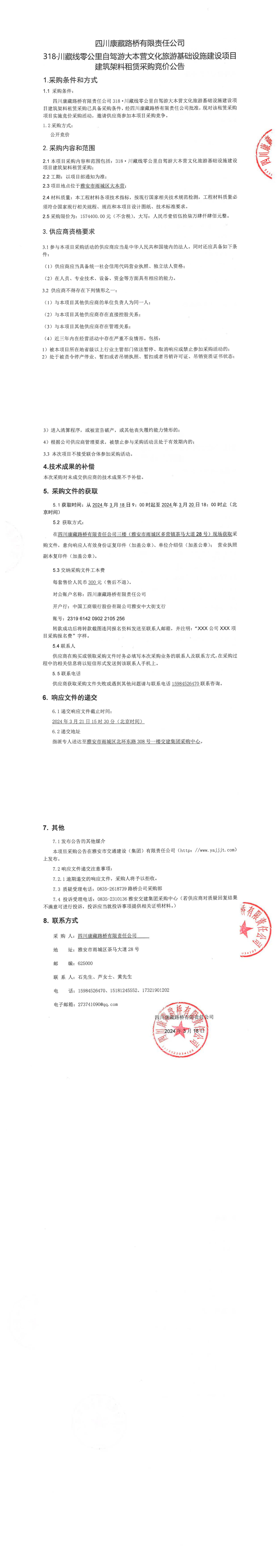 四川康藏路橋有限責(zé)任公司318·川藏線零公里自駕游大本營(yíng)文化旅游基礎(chǔ)設(shè)施建設(shè)項(xiàng)目建筑架料采購(gòu)公告