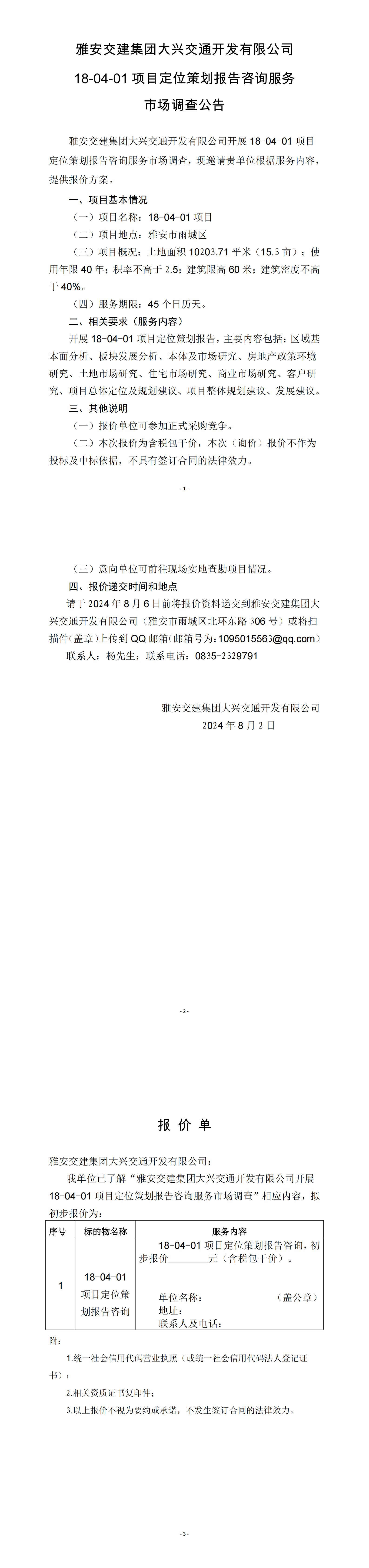 雅安交建集團大興交通開發(fā)有限公司18-04-01項目定位策劃報告咨詢服務(wù)市場調(diào)查公告