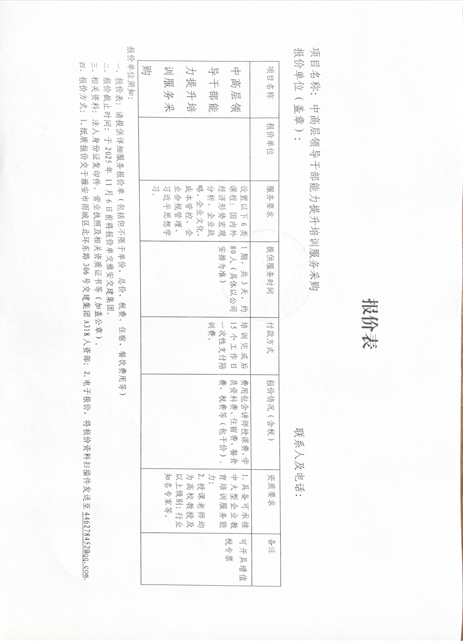 中高層領導干部能力提升培訓服務采購詢價邀請