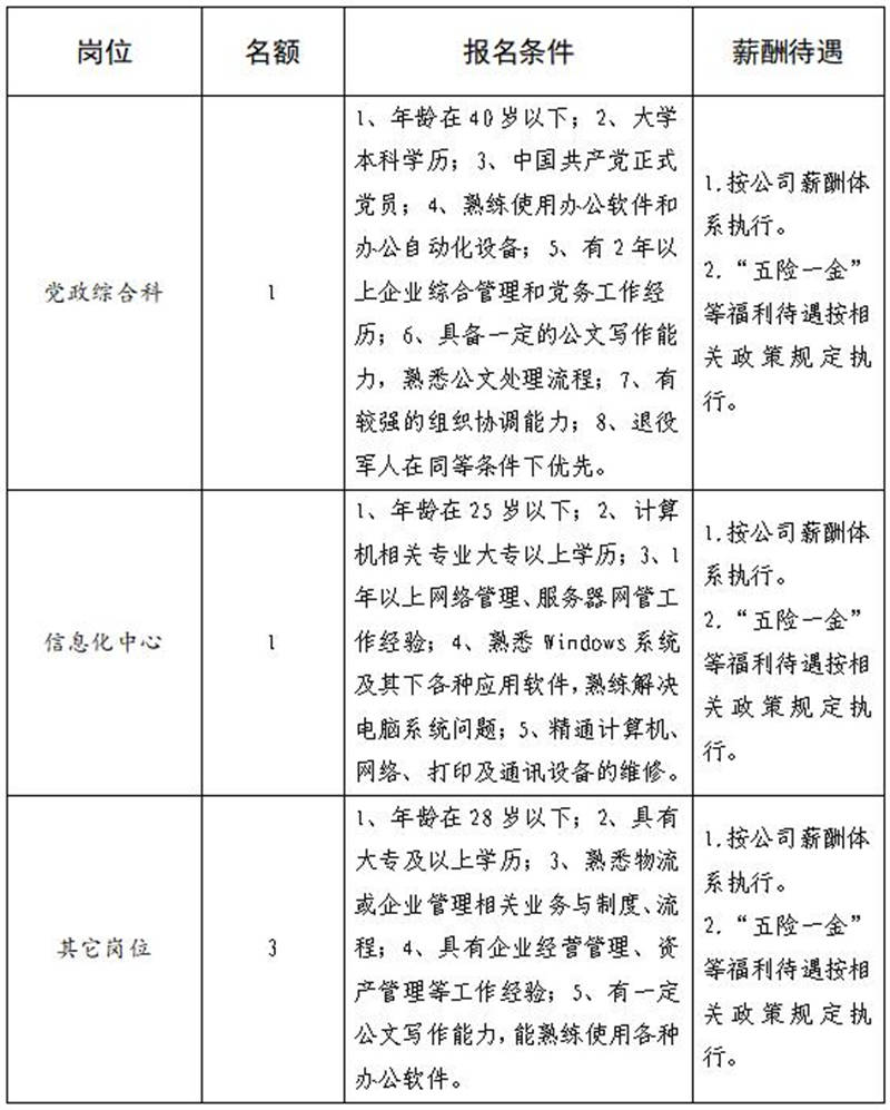 雅安交建集團(tuán)無(wú)水港物流有限責(zé)任公司主要從事雅安市快遞物流分撥、集裝箱掏拼箱作業(yè)、倉(cāng)儲(chǔ)等業(yè)務(wù),F(xiàn)根據(jù)公司業(yè)務(wù)發(fā)展需要,雨城分公司擬招聘5名工作人員,現(xiàn)將有關(guān)事項(xiàng)公告如下:
