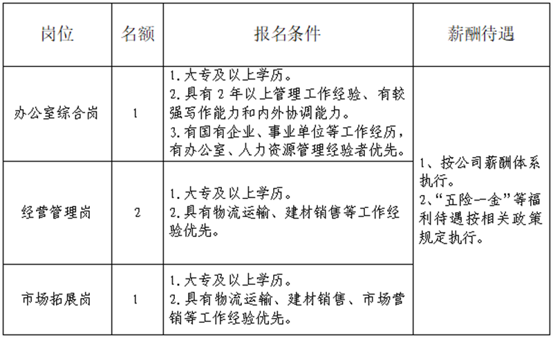 雅安交建集團(tuán)運(yùn)通貿(mào)易有限公司是雅安市交通建設(shè)(集團(tuán))有限責(zé)任公司下屬子公司。主要從事普通貨運(yùn)、建材銷售、供應(yīng)鏈管理、貨運(yùn)代理、貨運(yùn)信息咨詢服務(wù)、倉儲配送服務(wù)等工作,F(xiàn)根據(jù)公司業(yè)務(wù)發(fā)展需要,決定招聘4名工作人員,現(xiàn)將有關(guān)事項(xiàng)公告如下: