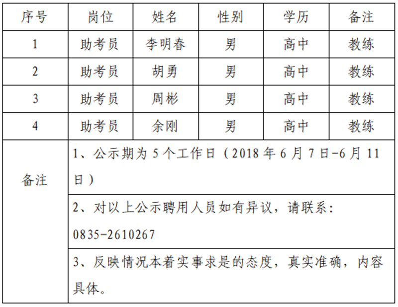 通過公開報名、資格審查、面試等程序,經(jīng)雅安交建集團平順檢測有限公司研究擇優(yōu)確定以下4名擬聘用人員,現(xiàn)公示名單如下:
