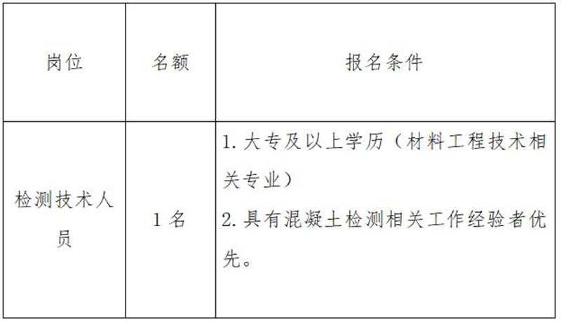 雅安交建集團(tuán)康居建設(shè)工程質(zhì)量與室內(nèi)環(huán)境污染檢測有限公司是雅安市交通建設(shè)(集團(tuán))有限責(zé)任公司下屬子公司,主要從事民用建筑室內(nèi)環(huán)境污染檢測業(yè)務(wù),F(xiàn)根據(jù)公司業(yè)務(wù)發(fā)展需要,擬向社會公開招聘1名技術(shù)檢測人員,現(xiàn)將有關(guān)事項(xiàng)公告如下: