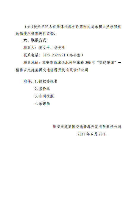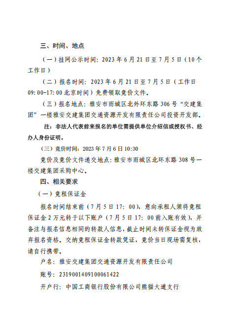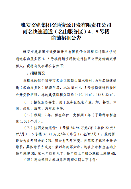 雅安交建集團(tuán)交通資源開發(fā)有限責(zé)任公司雨名快速通道(名山服務(wù)區(qū))4、5號樓招租公告