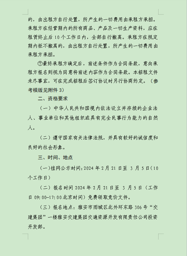 雅安交建集團(tuán)大興交通資源開發(fā)有限公司關(guān)于雨城區(qū)姚橋片區(qū)15-09地塊2024年競(jìng)價(jià)招租的公告