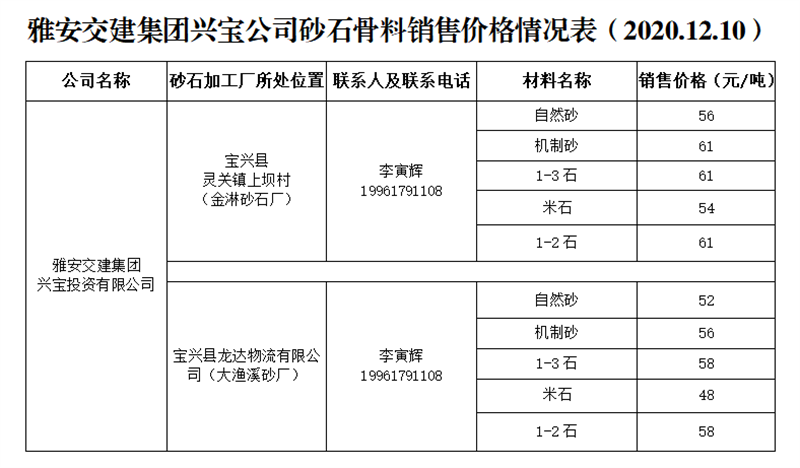 ÑŰ²½»½¨¼¯ˆF(tu¨¢n)ÅdŒš¹«Ë¾É°Ê¯¹ÇÁÏäNÊÛƒr(ji¨¤)¸ñÇé›r±í£¨2020.12.10£©