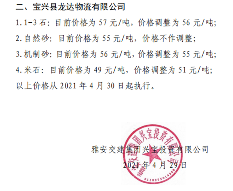 ÑŰ²½»½¨¼¯ˆFÅdŒš¹«Ë¾É°Ê¯¹ÇÁÏäNÊÛƒr¸ñÇé›r±í£¨2021.4.30£©