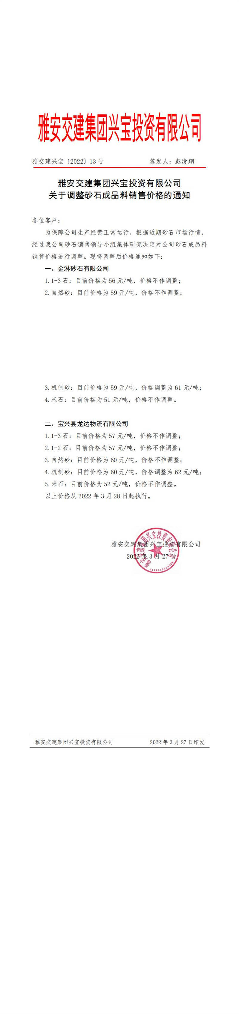 ÑŽ»½¨ÅdŒš¡²2022¡³13Ì–(h¨¤o) êP(gu¨¡n)ÓÚÕ{(di¨¤o)Õûɰʯ³ÉÆ·ÁÏäN(xi¨¡o)ÊÛƒr(ji¨¤)¸ñµÄ֪ͨ-3ÔÂ27ÈÕ