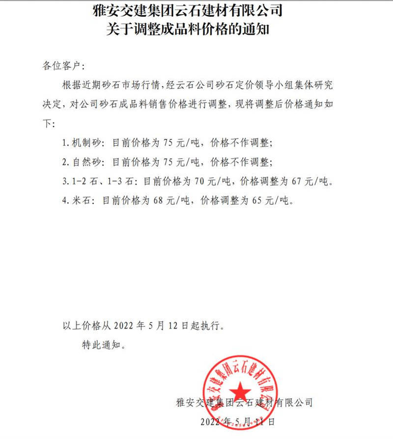 ÑŰ²½»½¨ÔÆÊ¯½¨²ÄÓÐÏÞ¹«Ë¾Õ{(di¨¤o)ƒr(ji¨¤)֪ͨ-2022-5-12